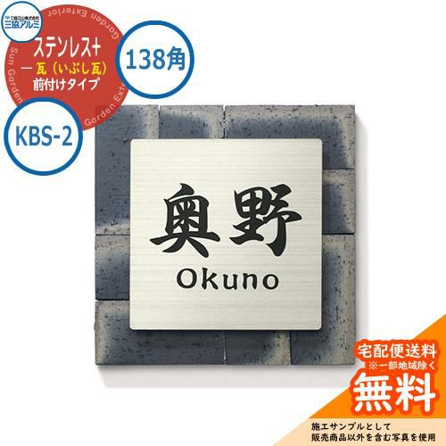 表札 ステンレス おしゃれ ステンレス+瓦(いぶし瓦) 138角タイプ 正方形 KBS-2 壁付け専用