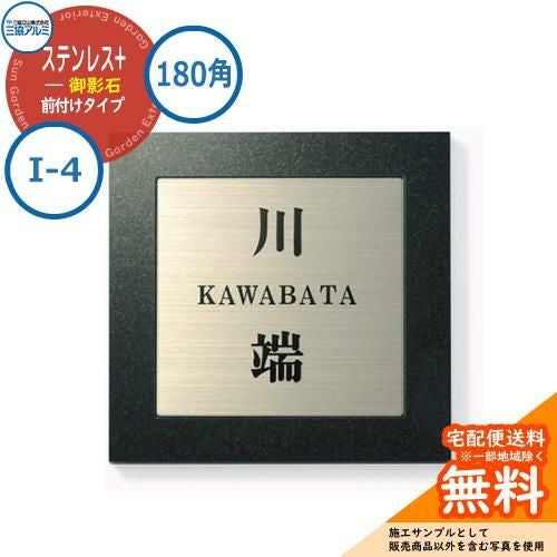 表札 ステンレス おしゃれ ステンレス+御影石 180角タイプ 正方形 (ステンレス埋め込みタイプ) I-4 壁付け専用 黒ミカゲ(EIK)