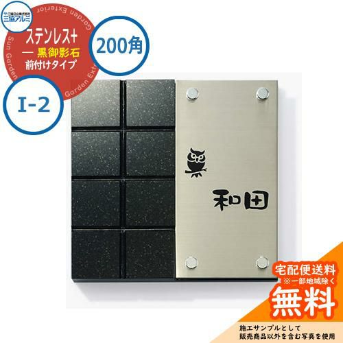 表札 ステンレス おしゃれ ステンレス+黒御影石 200角タイプ 正方形 I-2 壁付け専用