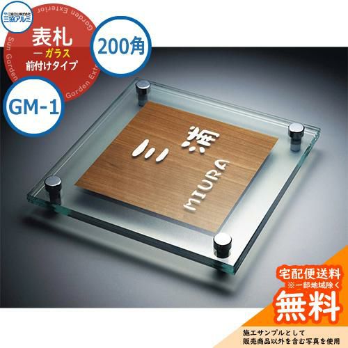 表札 ガラス おしゃれ ガラス+木調 200角タイプ 正方形 GM-1 壁付け専用