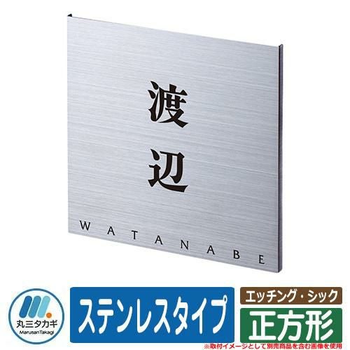 表札 おしゃれ エッチング・シック 1:正方形 ステンレスタイプ 塗装:文字色:ブラック