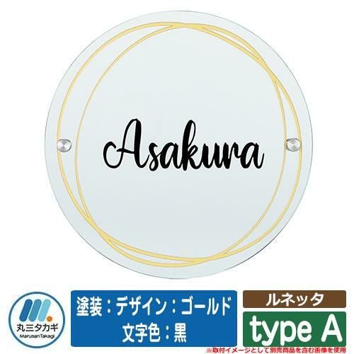 表札 おしゃれ ルネッタ type A 塗装:デザイン:ゴールド 文字色:黒