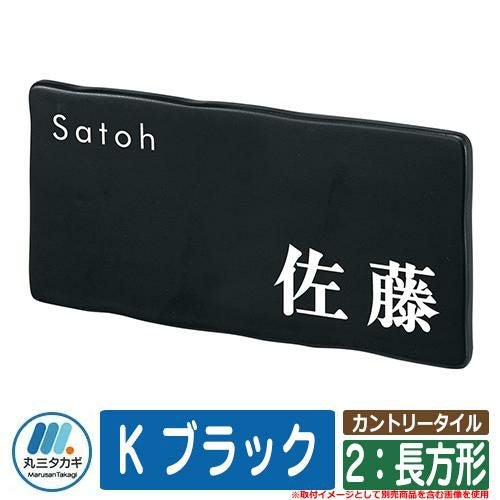 表札 おしゃれ カントリータイル 2:長方形 K ブラック 塗装:文字色:シルバー