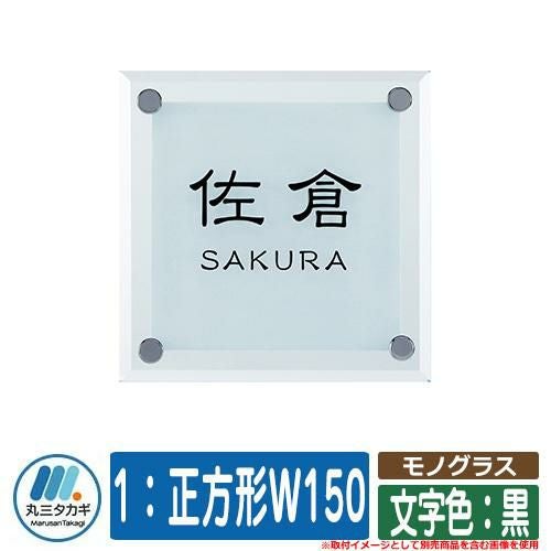 表札 おしゃれ モノグラス 1:正方形W150 塗装:文字色:黒
