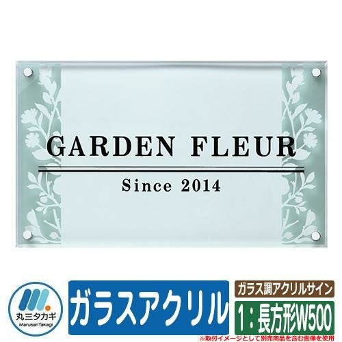 表札 おしゃれ ガラス調アクリルサイン 1:長方形W500 ガラスアクリル 塗装:文字色:黒 デザイン色:黒・素彫り