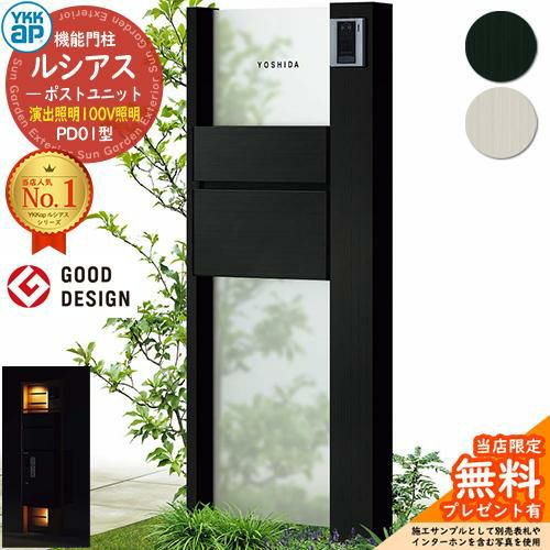 機能門柱 ルシアスポストユニット 門柱 ポスト 宅配ボックス YKK YKKap 郵便ポスト 郵便受け 宅配ポスト 機能ポール 一戸建て用 一体型 LED