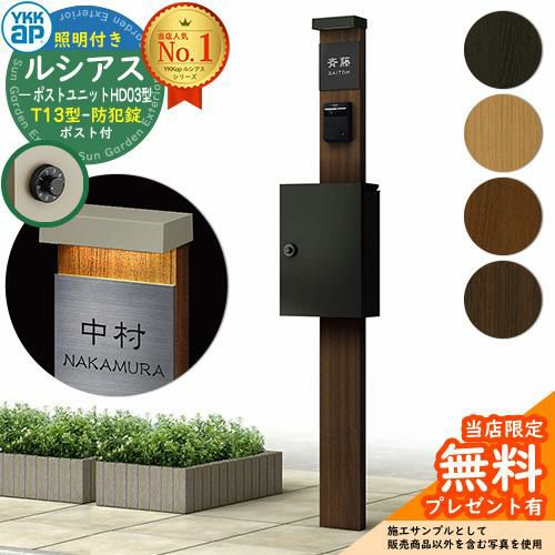 機能門柱 YKKap ルシアスポストユニットHD03型 (100V)照明付き T13型ポスト(防犯錠)セット