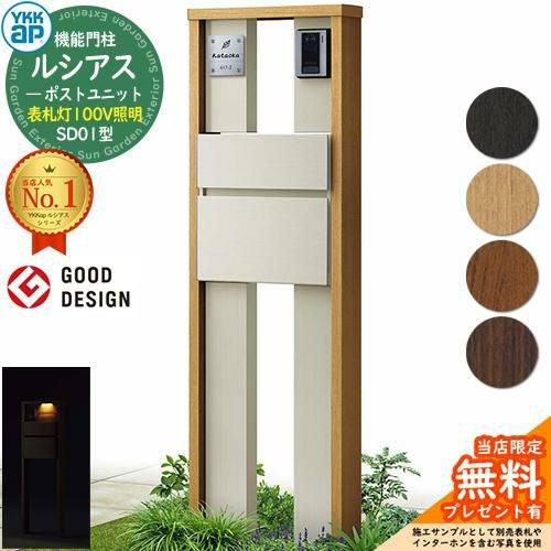 YKKap 機能門柱 ルシアス ポストユニットSD01型 表札灯タイプ(100V照明) T10型セット