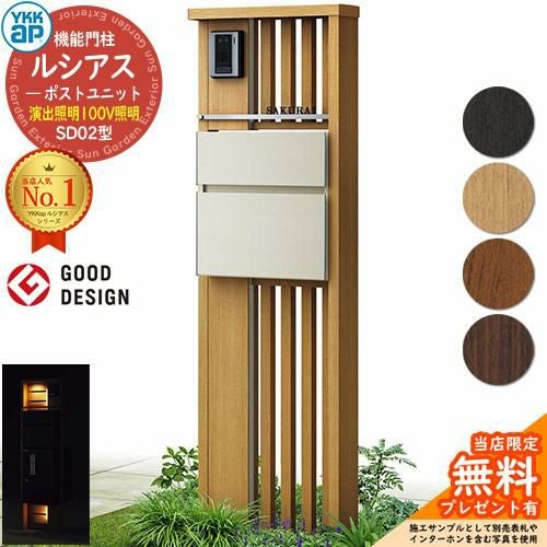 機能門柱 ルシアスポストユニット 門柱 ポスト 宅配ボックス YKK YKKap 郵便ポスト 郵便受け 宅配ポスト 機能ポール 一戸建て用 一体型 LED