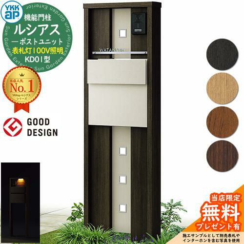YKKap 機能門柱 ルシアス ポストユニットKD01型 表札灯タイプ(100V照明) T11型セット