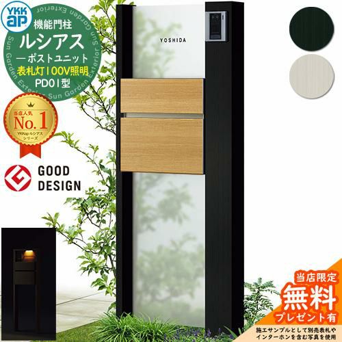 YKKap 機能門柱 ルシアス ポストユニットPD01型 表札灯タイプ(100V照明) T10型セット
