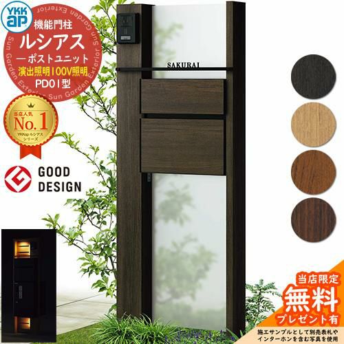 セット内容 ■ルシアスポストユニットPD01型 演出照明タイプ(100V照明) 本体(木調色)※R仕様・L仕様有