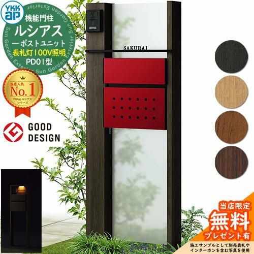 YKKap 機能門柱 ルシアス ポストユニットPD01型 表札灯タイプ(100V照明) T12型セット