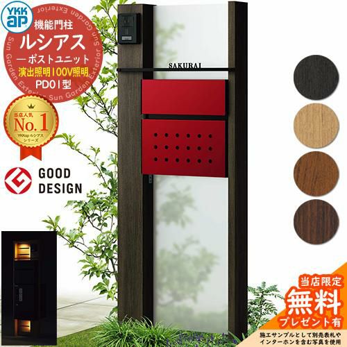 機能門柱 ルシアスポストユニット 門柱 ポスト 宅配ボックス YKK YKKap 郵便ポスト 郵便受け 宅配ポスト 機能ポール 一戸建て用 一体型 LED