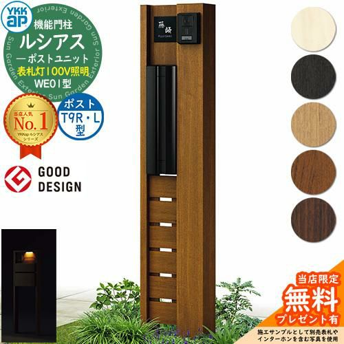 YKKap 機能門柱 ルシアス ポストユニットWE01型 表札灯タイプ(100V照明) T9R(L)型セット