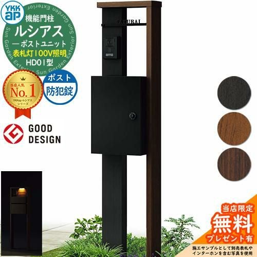 YKKap 機能門柱 ルシアス ポストユニットHD01型 表札灯タイプ(100V照明) T13型(防犯錠)セット