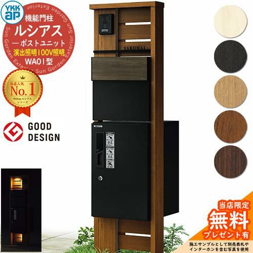 機能門柱 ルシアスポストユニット 門柱 ポスト 宅配ボックス YKK YKKap 郵便ポスト 郵便受け 宅配ポスト 機能ポール 一戸建て用 一体型 LED