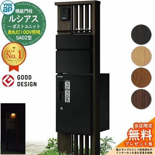 YKKap 機能門柱 ルシアス ポストユニットSA02型 表札灯タイプ(100V照明)
