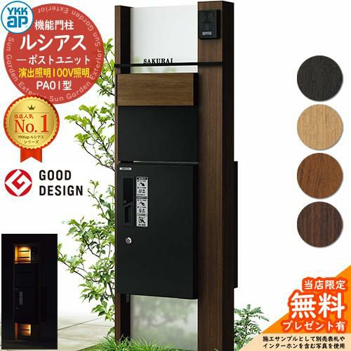 機能門柱 ルシアスポストユニット 門柱 ポスト 宅配ボックス YKK YKKap 郵便ポスト 郵便受け 宅配ポスト 機能ポール 一戸建て用 一体型 LED