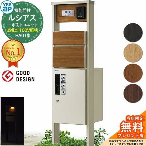 YKKap 機能門柱 ルシアス ポストユニットHA01型 表札灯タイプ(100V照明)
