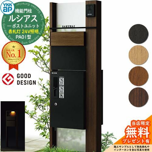 YKKap 機能門柱 ルシアス ポストユニットPA01型 表札灯タイプ(24V照明)