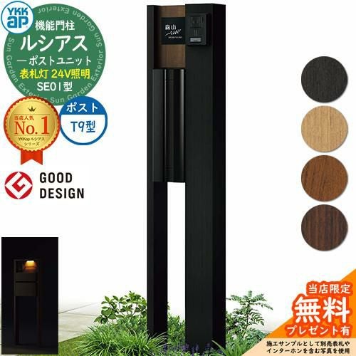 YKKap 機能門柱 ルシアス ポストユニットSE01型 表札灯タイプ(24V照明) T9型セット