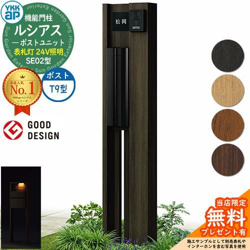 YKKap 機能門柱 ルシアス ポストユニットSE02型 表札灯タイプ(24V照明) T9型セット