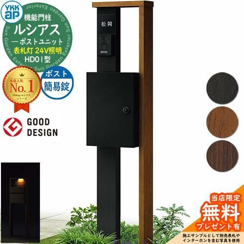 YKKap 機能門柱 ルシアス ポストユニットHD01型 表札灯タイプ(24V照明) T13型(簡易錠)セット