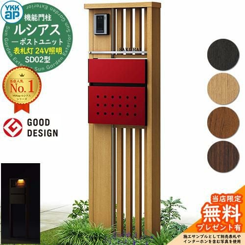 セット内容 ■ルシアスポストユニットSD02型 表札灯タイプ(24V照明) 本体(木調色)※R仕様・L仕様有