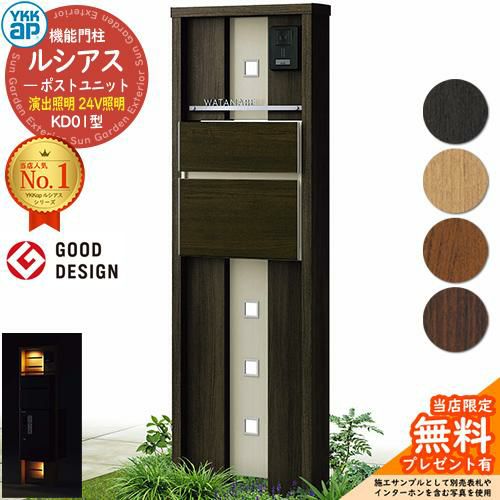 YKKap 機能門柱 ルシアス ポストユニットKD01型 演出照明タイプ(24V照明) T10型セット