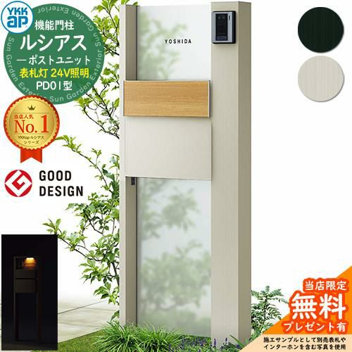 YKKap 機能門柱 ルシアス ポストユニットPD01型 表札灯タイプ(24V照明) T11型セット