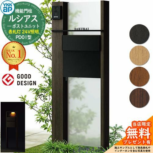 YKKap 機能門柱 ルシアス ポストユニットPD01型 表札灯タイプ(24V照明) T11型セット