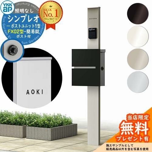 機能門柱 YKKap シンプレオポストユニット1型 照明なし FX02型ポストセット