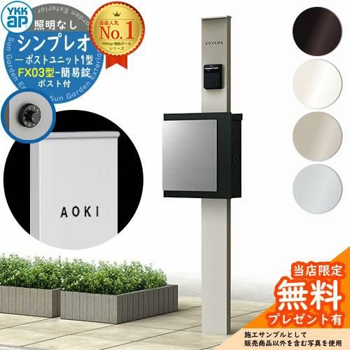 機能門柱 YKKap シンプレオポストユニット1型 照明なし FX03型ポストセット