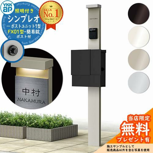 YKKap シンプレオポストユニット 1型 照明付き(100V照明)本体 FX01型ポスト(簡易錠) セット 上入れ横出し