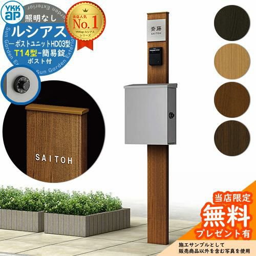 YKKap ルシアスポストユニット HD03型 照明なし本体 T14型ポスト(簡易錠) セット 上入れ横出し