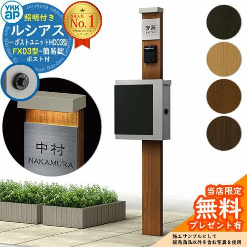 YKKap ルシアスポストユニット HD03型 (100V)照明付き本体 FX03型ポスト(簡易錠) セット 上入れ横出し