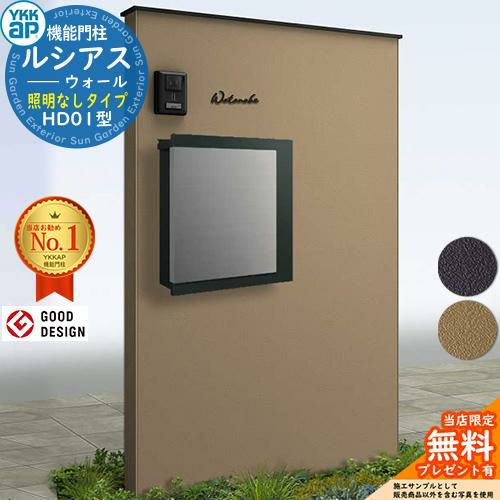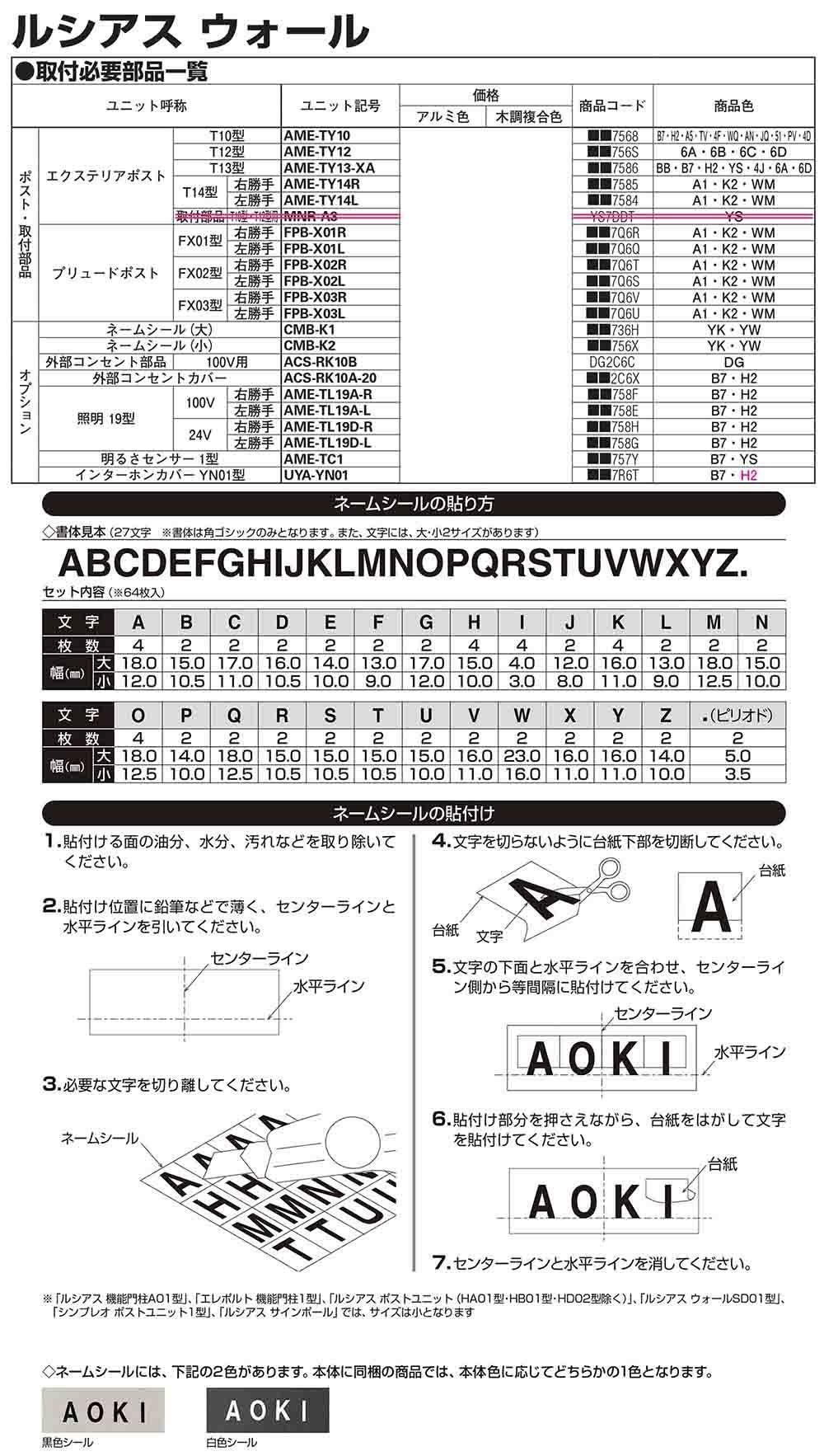 ルシアスウォール HD01型 ポスト正面納まり 照明なしタイプ 本体:複合色(単色パネル) プリュードポストFX03型(アルミ色)