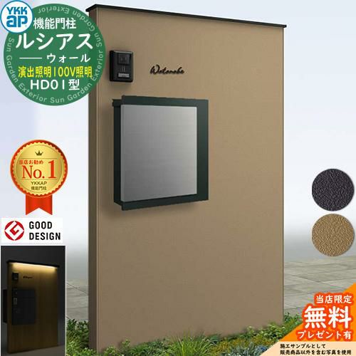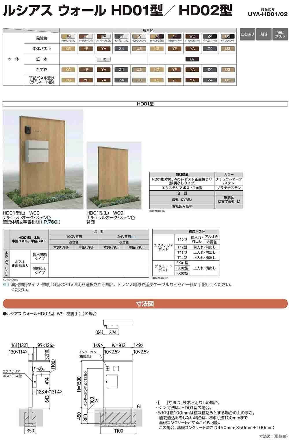 ルシアスウォール HD01型 ポスト正面納まり 演出照明タイプ(100V照明) 本体:複合色(単色パネル) エクステリアポストT13型(アルミ色)