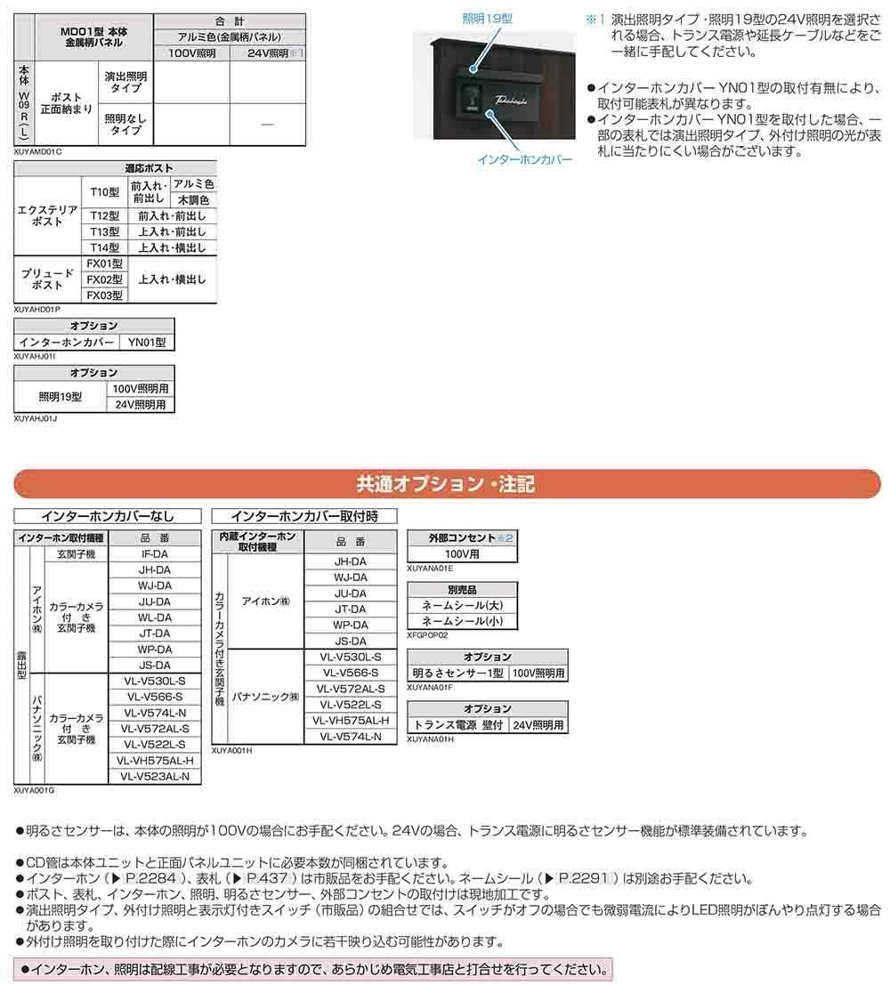 ルシアスウォール MD01型 ポスト正面納まり 演出照明タイプ(24V照明) 本体:アルミ色 エクステリアポストT10型(複合色)