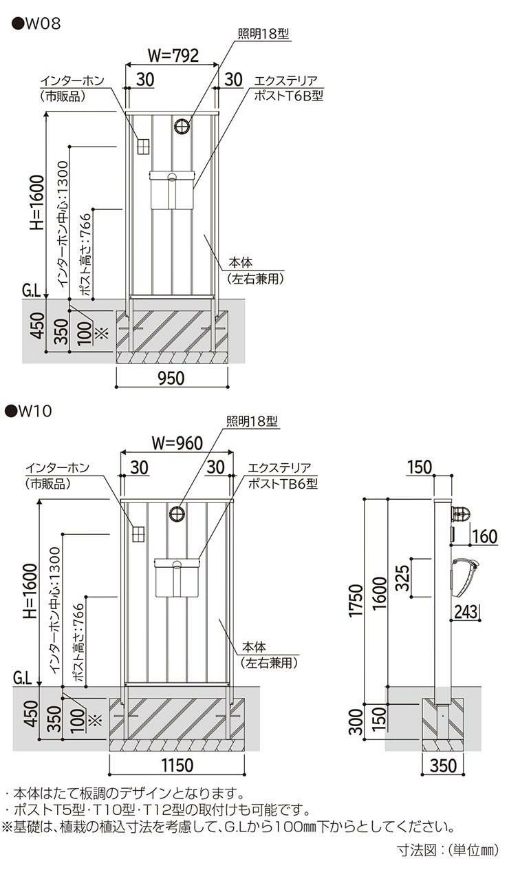 機能門柱 ルシアスポストユニット WA01型 表札灯タイプ(100V照明)