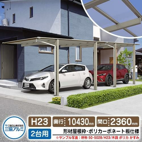 カーポート 2台用 スカイリード 片側支持・奥行2連結タイプ H23 呼称:50・5425