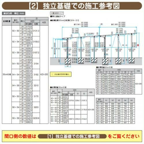 スカイリード 片側支持・奥行2連結タイプ H25 呼称:54・5424 木調屋根枠(パネル材質:ポリカーボネート板) 耐風圧強度:風速42m/s相当