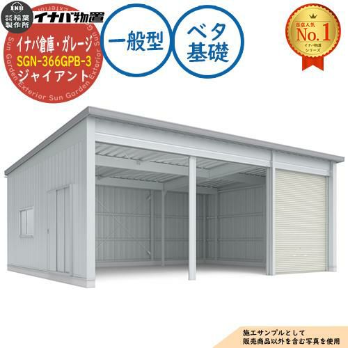 物置 屋外 収納 イナバ倉庫・ガレージ SGN-366GPB-3 ベタ基礎 ジャイアント 3棟タイプ 一般型 幅9286×奥行6686×高さ3665