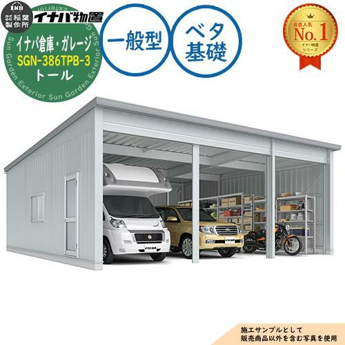 物置 屋外 収納 イナバ倉庫・ガレージ SGN-386TPB-3 ベタ基礎 トール 3棟タイプ 一般型 幅9286×奥行8686×高さ3365