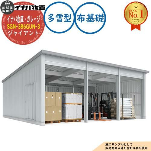 物置 屋外 収納 イナバ倉庫・ガレージ SGN-386GUN-3 布基礎 ジャイアント 3棟タイプ 多雪型 幅9286×奥行8686×高さ3665