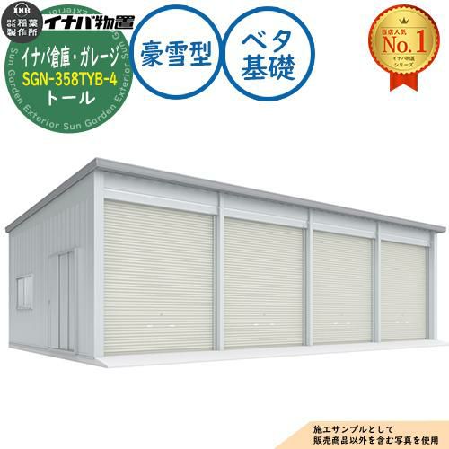 物置 屋外 収納 イナバ倉庫・ガレージ SGN-358TYB-4 ベタ基礎 トール 4棟タイプ 豪雪型 幅12286×奥行5886×高さ3365