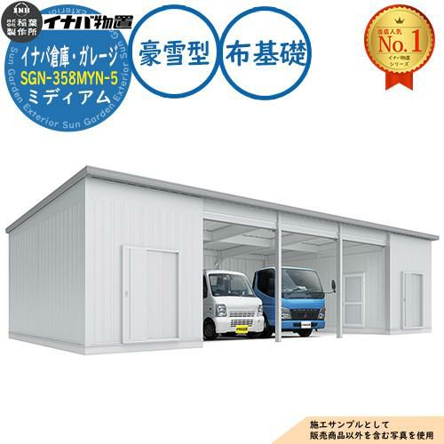 セット内容 ■ イナバ倉庫・ガレージ SGN-358MYN-5 布基礎 ミディアム 5棟タイプ 豪雪型 幅15446×奥行5886×高さ3065