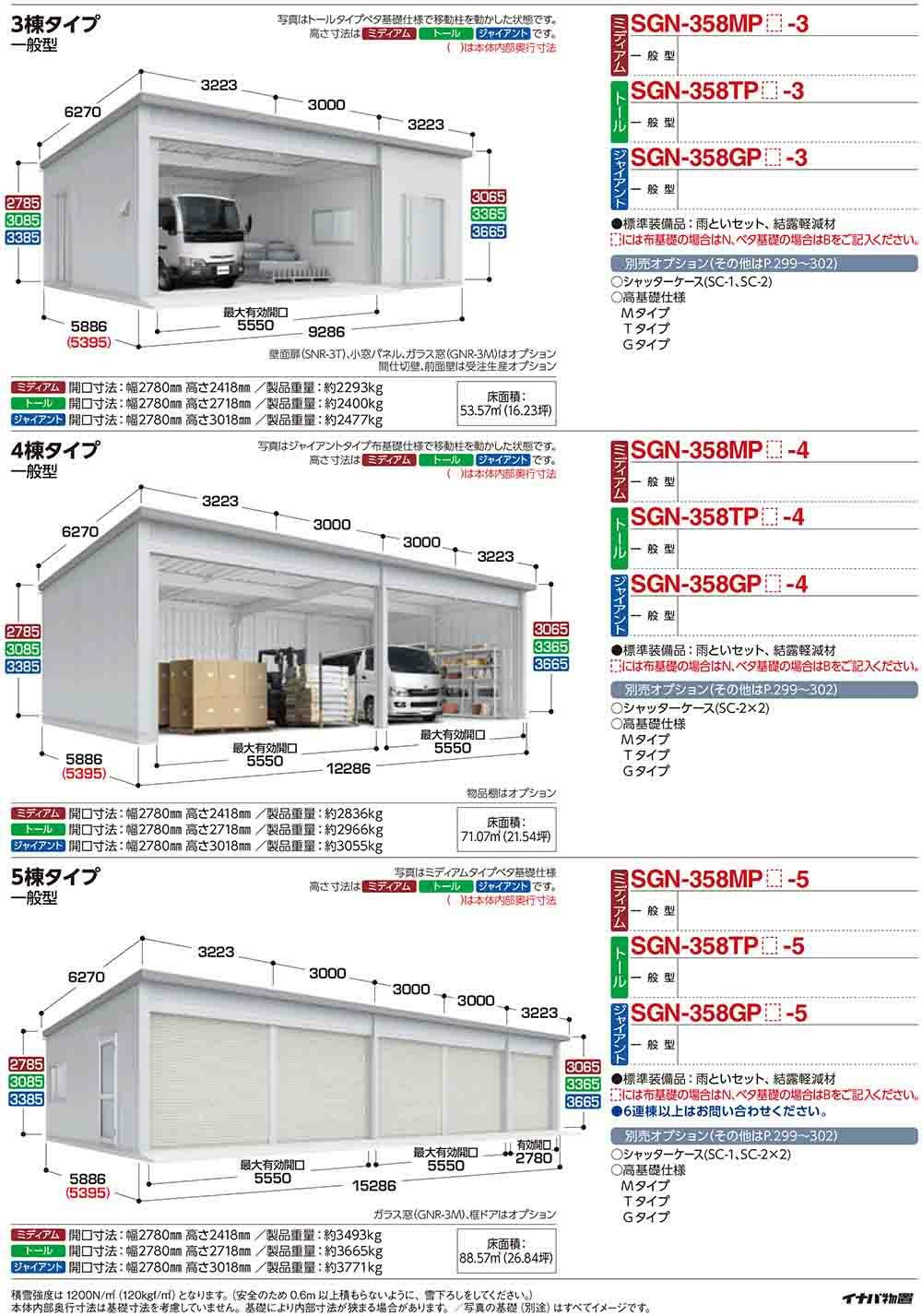 イナバ倉庫・ガレージ SGN-358GPN-3 布基礎 ジャイアント 3棟タイプ 一般型 幅9286×奥行5886×高さ3665