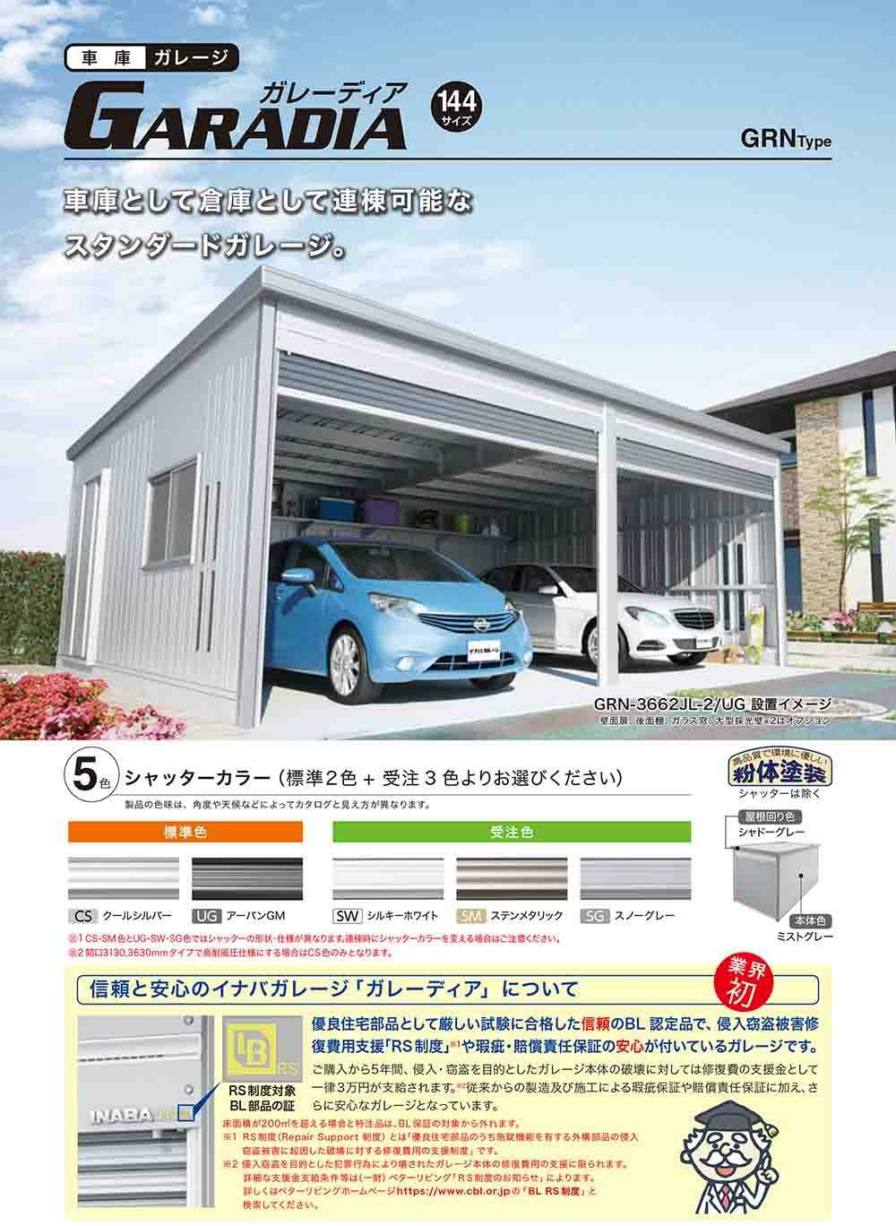 ガレーディア ガレージ GRN-3647SL 3台以上収納タイプ スタンダード 基本棟(1棟目) 一般型 幅3630×奥行4775×高さ2360